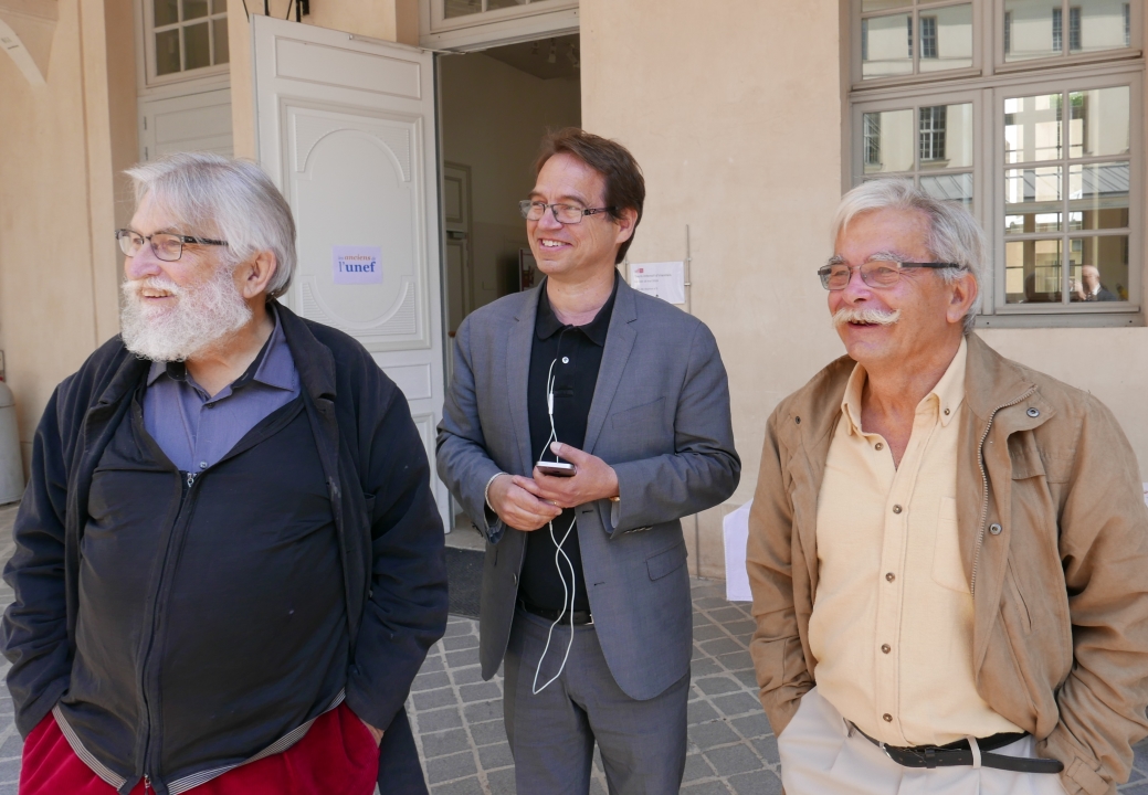 Jean-Jacques Hocquard, un des refondateurs et pilier de notre association, est décédé le 21 janvier 2026 à l’âge de 84 ans. Il a été membre du du « bureau Wallon » (1961/1962). Pour notre site et ses obsèques ce 29 janvier au Père-Lachaise, Dominique Wallon a rédigé ce texte. (Photo: Jean-Jacques (à gauche) avec Georges Terrier et Jean-Louis Peninou, le 19 mai 2018, à la journée « l’Unef en mai et juin 1968 ». Photo Michel Langrognet.